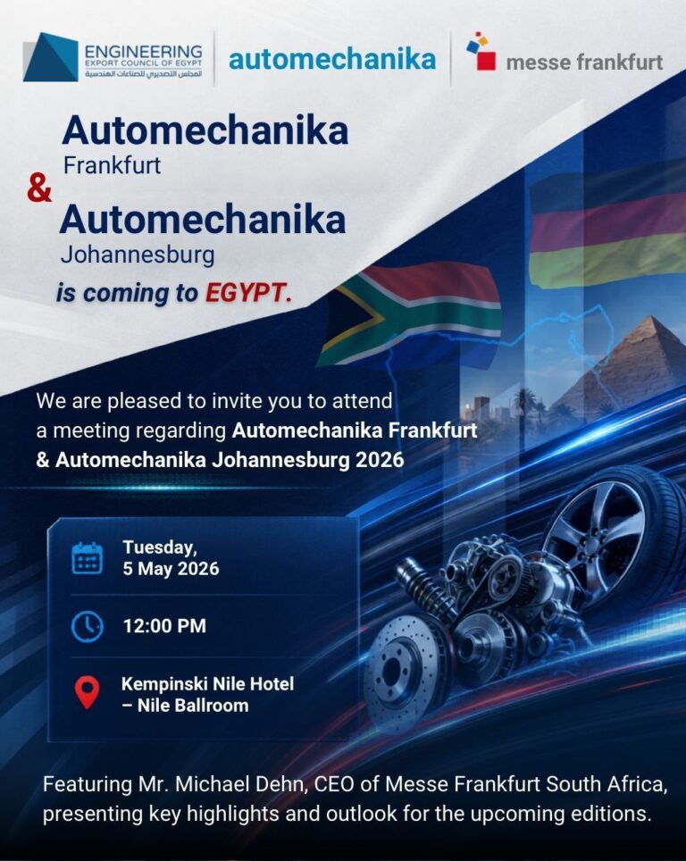 Automechanika by Messe Frankfurt is coming to EGYPT. We are pleased to invite you to attend a meeting regarding Automechanika Frankfurt & Automechanika Johannesburg 2026